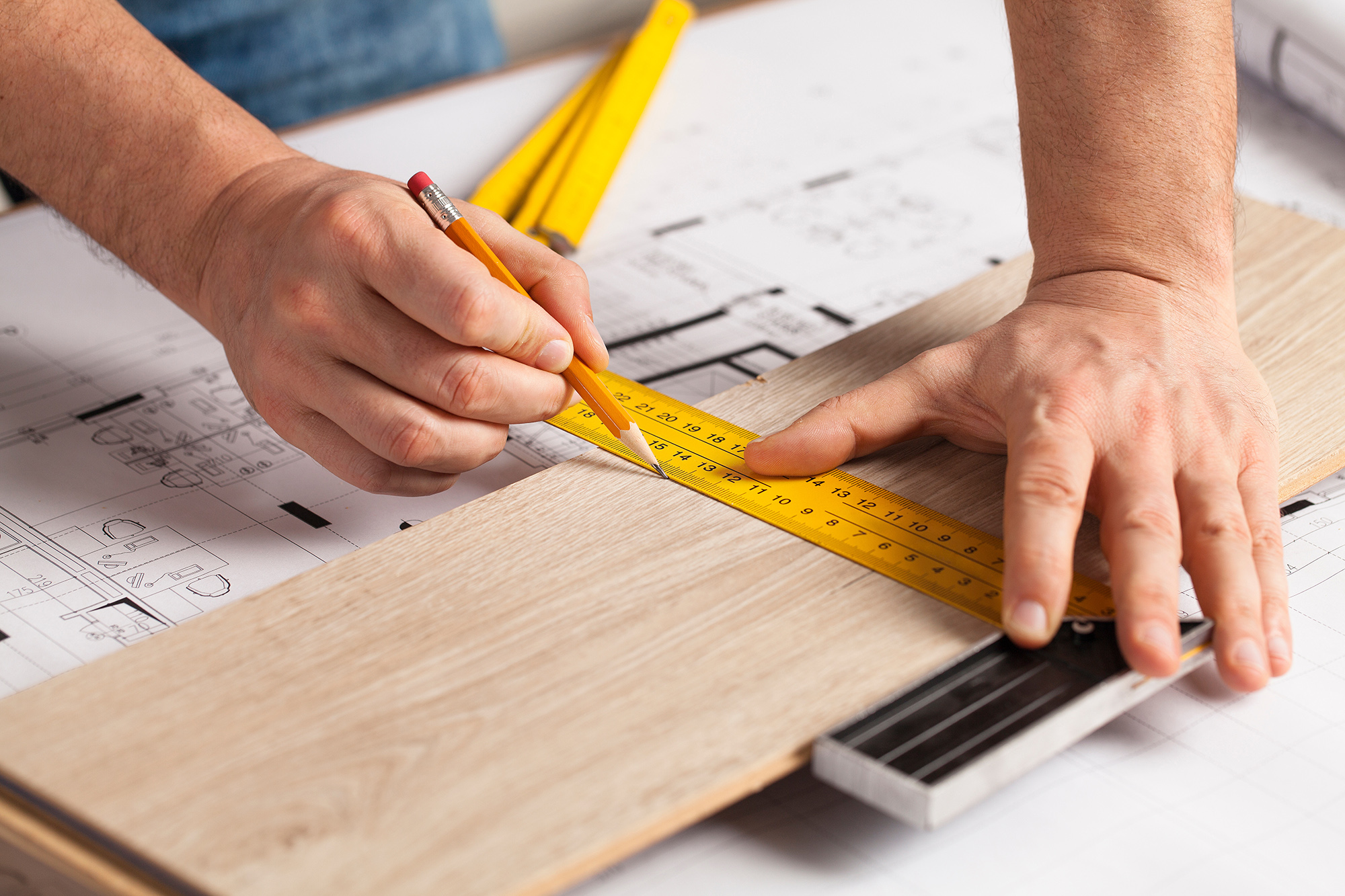 - Parkett, Kork und Laminat verlegen, farblich abstimmen und Muster erstellen, befestigen und zuschneiden
